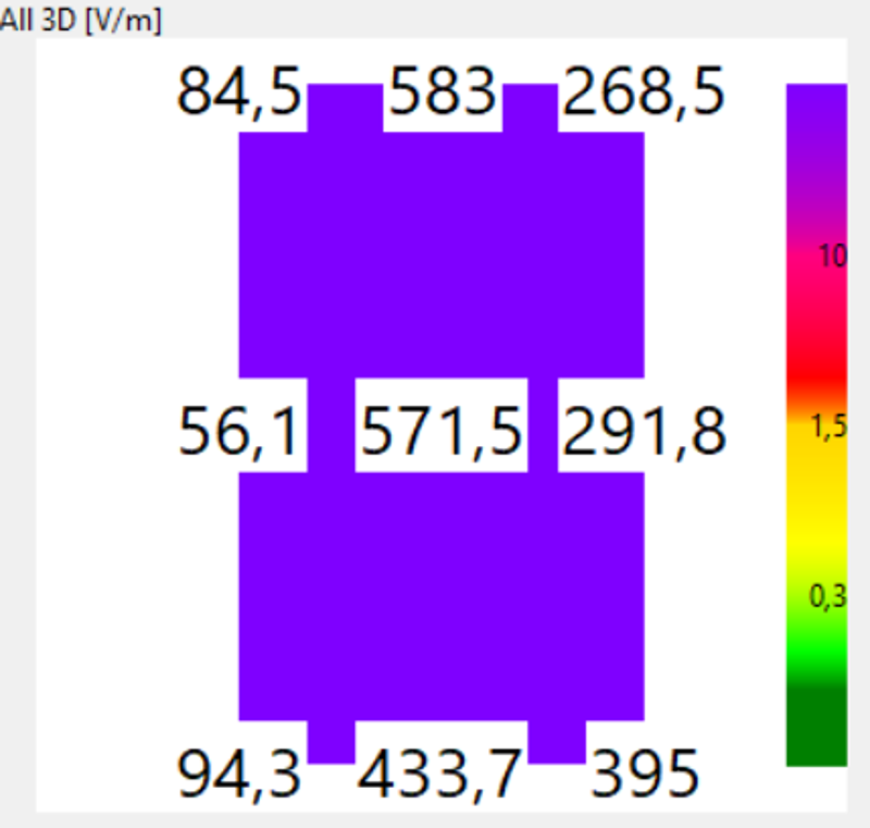 Der Vater einer dreiköpfigen Familie stellte bei mir eine Anfrage für eine Schlafplatzuntersuchung. Zwei Betten sollte ich untersuchen: Das Bett des Kindes und das der Eltern. Während das Kinderbett kaum Auffälligkeiten zeigte, sorgte das Ehebett für Messwerte, die man so nur selten zu Gesicht bekommt: Die 9-Punkt-Messung zeigte fast 600 V/m (potentialfrei) an der am stärksten belastetsten Stelle! Zum Vergleich: Nach den Richtwerten des Standard der Baubiologischen Messtechnik (SBM) gilt bereits alles über 10 V/m als extreme Belastung.